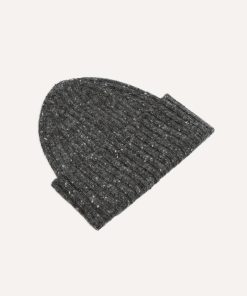 Drakes Men’s Grey Donegal Ribbed Merino Knit Cap