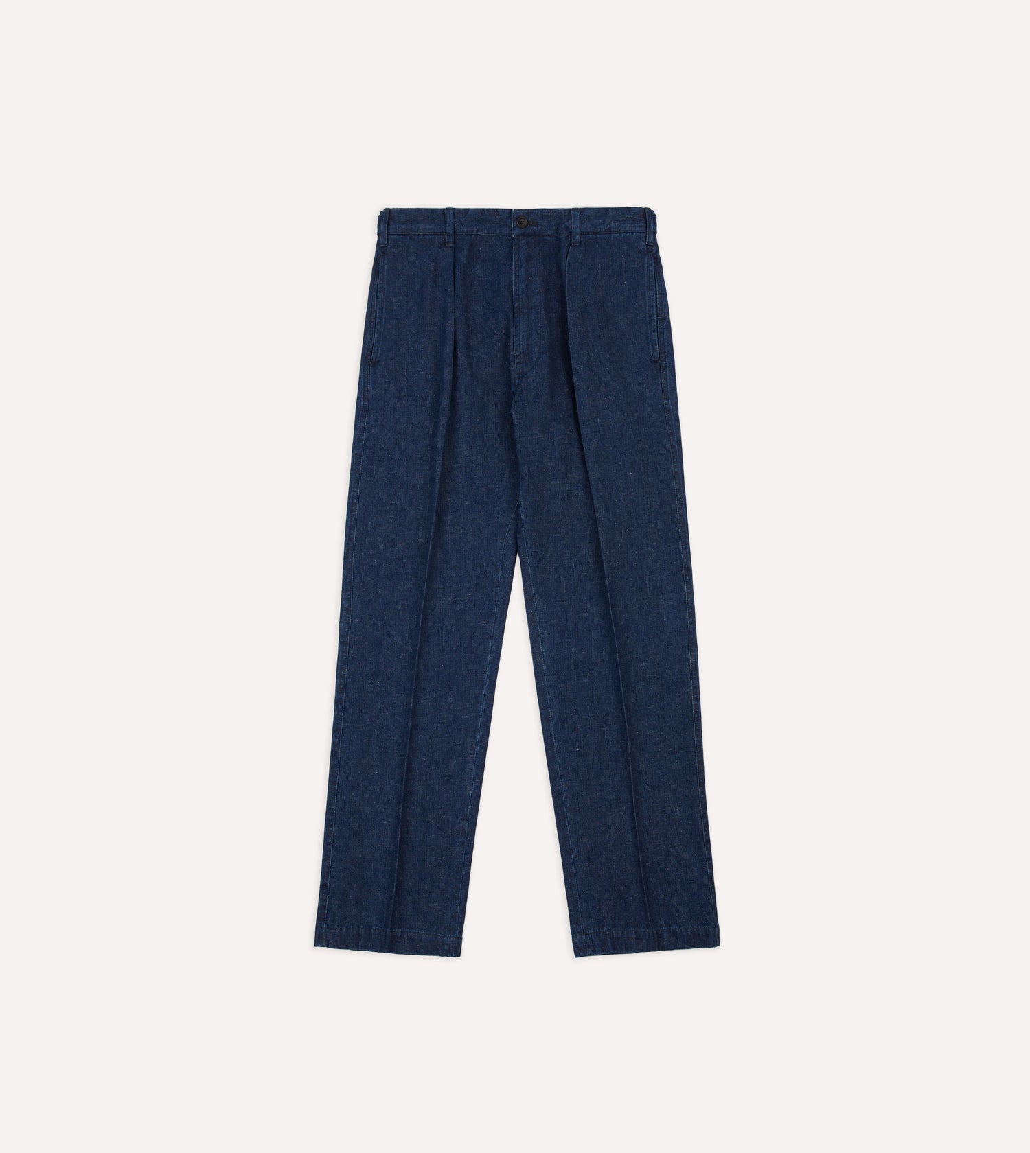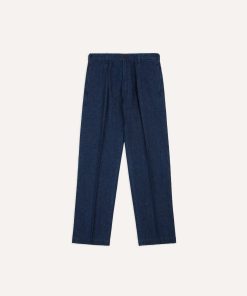 Designed as a companion to our Games Blazer, these relaxed fit trousers can be worn with the matching jacket for an ensemble that walks a line between tailoring and workwear.|Side adjusters alongside belt loops and a concealed fob pocket keep up the utilitarian nature of these trousers, while a full leg and high rise for a more tailored waist that sits just above the hip creates a classic, mid-century shape.|Featuring single pleats for greater freedom of movement, with a gentle taper below the knee, affording a clean, stylish silhouette suitable for year-round wear.|Cut from an indigo-dyed blend of cotton and linen, pair it with the matching blazer for an informal take on the classic two-piece suit.
