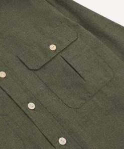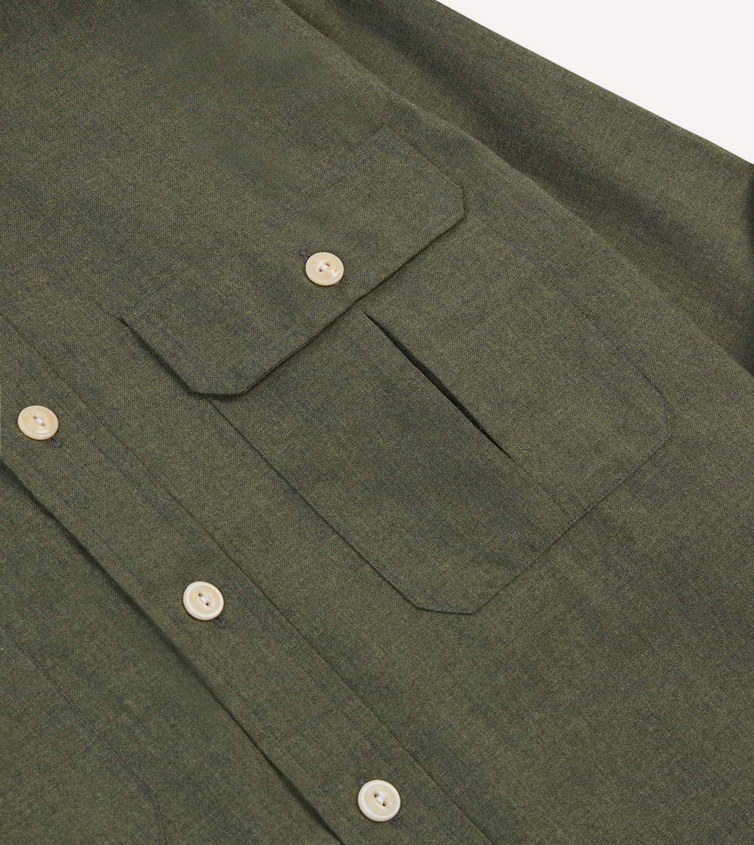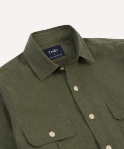 The rugged work shirt offers utility and urbanity in equal measure. As at home pottering in the garden as paddling in the surf, the work shirt is anything but a chore to wear.|Featuring two pleated, button-flap pockets for unburdened trousers, rounded cuffs and a classic collar ensuring fuss-free mobility, and capped off with the same single-needle construction de rigueur to Drake’s shirting.