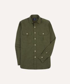 The rugged work shirt offers utility and urbanity in equal measure. As at home pottering in the garden as paddling in the surf, the work shirt is anything but a chore to wear.|Featuring two pleated, button-flap pockets for unburdened trousers, rounded cuffs and a classic collar ensuring fuss-free mobility, and capped off with the same single-needle construction de rigueur to Drake’s shirting.