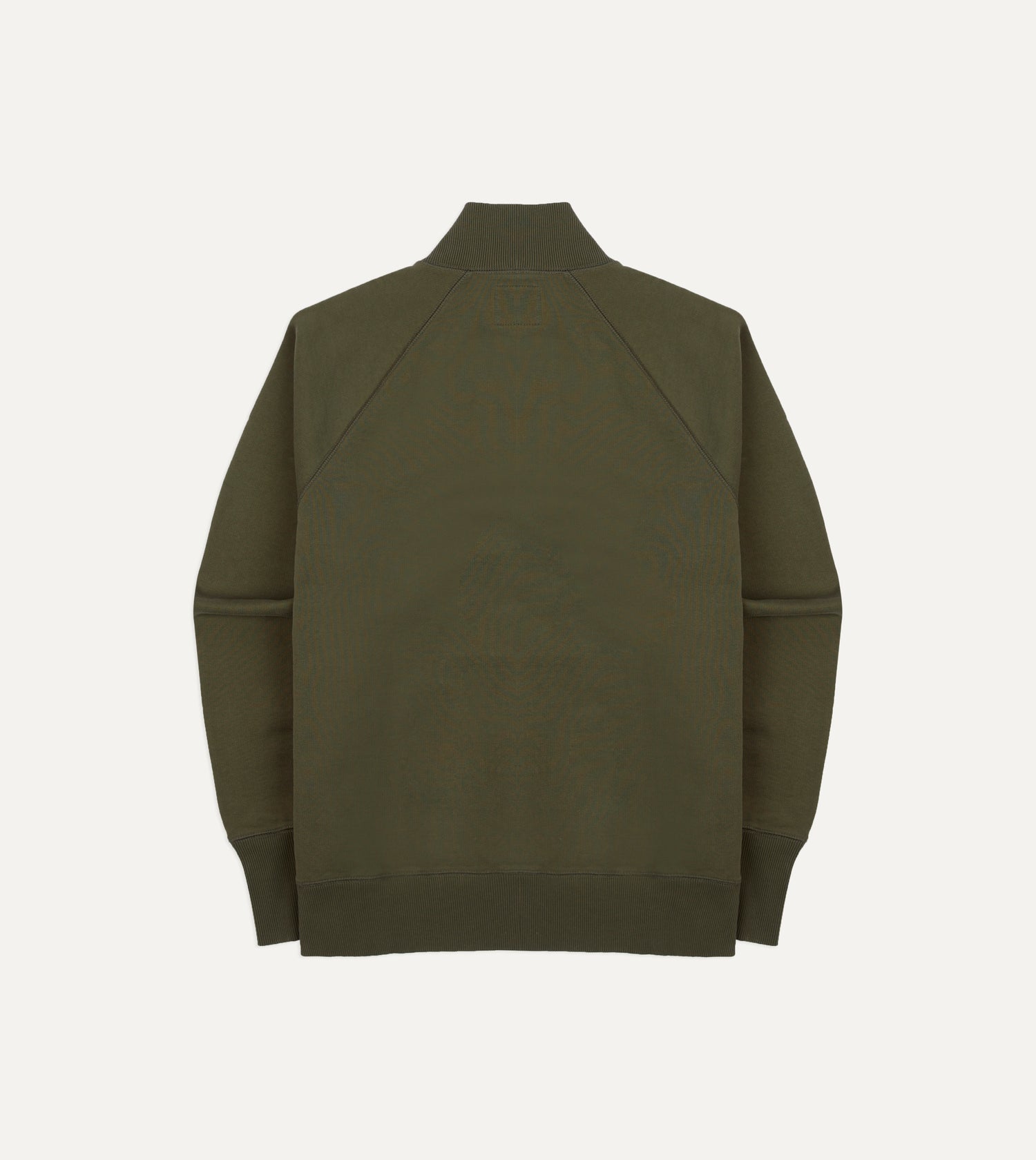 Drakes Men’s Khaki Green Cotton Quarter Zip Sweatshirt