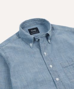 The chambray button-down shirt is an enduring icon of menswear, which looks as good now as it did a century ago. It’s an item that’s at the very heart of our brand, and remains a cornerstone of any wardrobe.|With a regular silhouette, floating interlinings, single-needle construction, and – perhaps most importantly – an elegant rolling collar, it’s a shirt for all occasions.