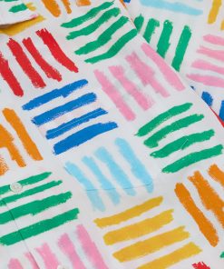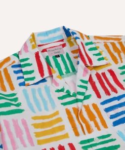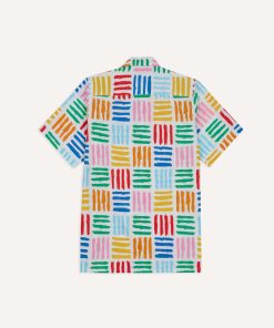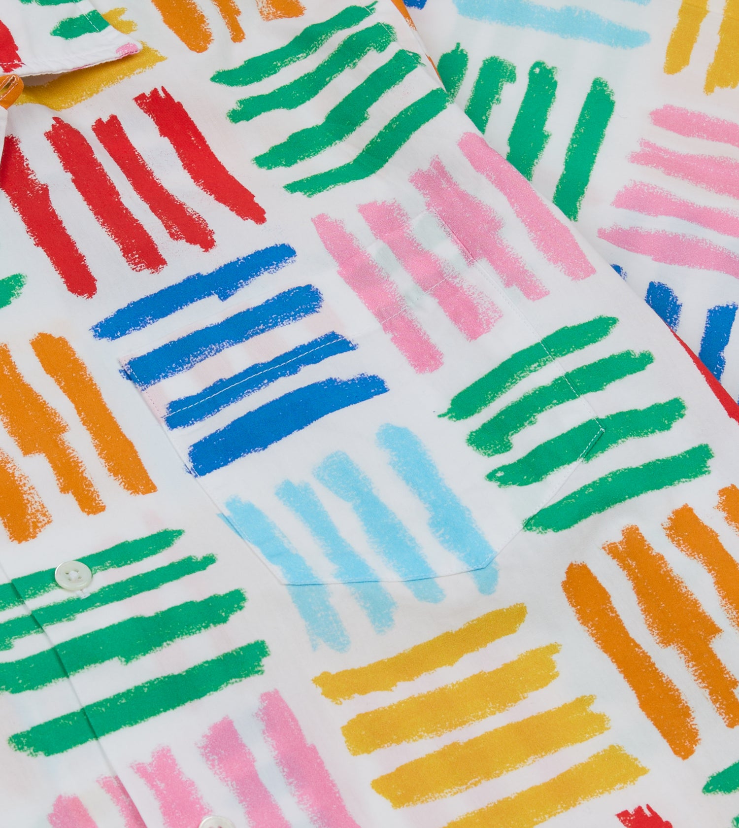 An artist’s brush meets a summer essential. This limited edition camp collar shirt is cut from a featherweight 3.6oz superfine cotton poplin, custom-printed with a hand-painted check motif by Michael McGregor.|With its square hem, loose fit, and gently structured open collar, the silhouette is timeless, a nod to decades of laid-back holiday style. Made in Portugal and finished with mother of pearl buttons, it’s designed to feel as effortless as it looks.