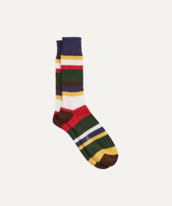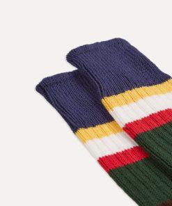 The ultimate sports socks are here, knitted in Wales with a nod to Ivy attire. Featuring a traditional sport stripe with a ribbed knit design, they are perfect for both on and off the court.