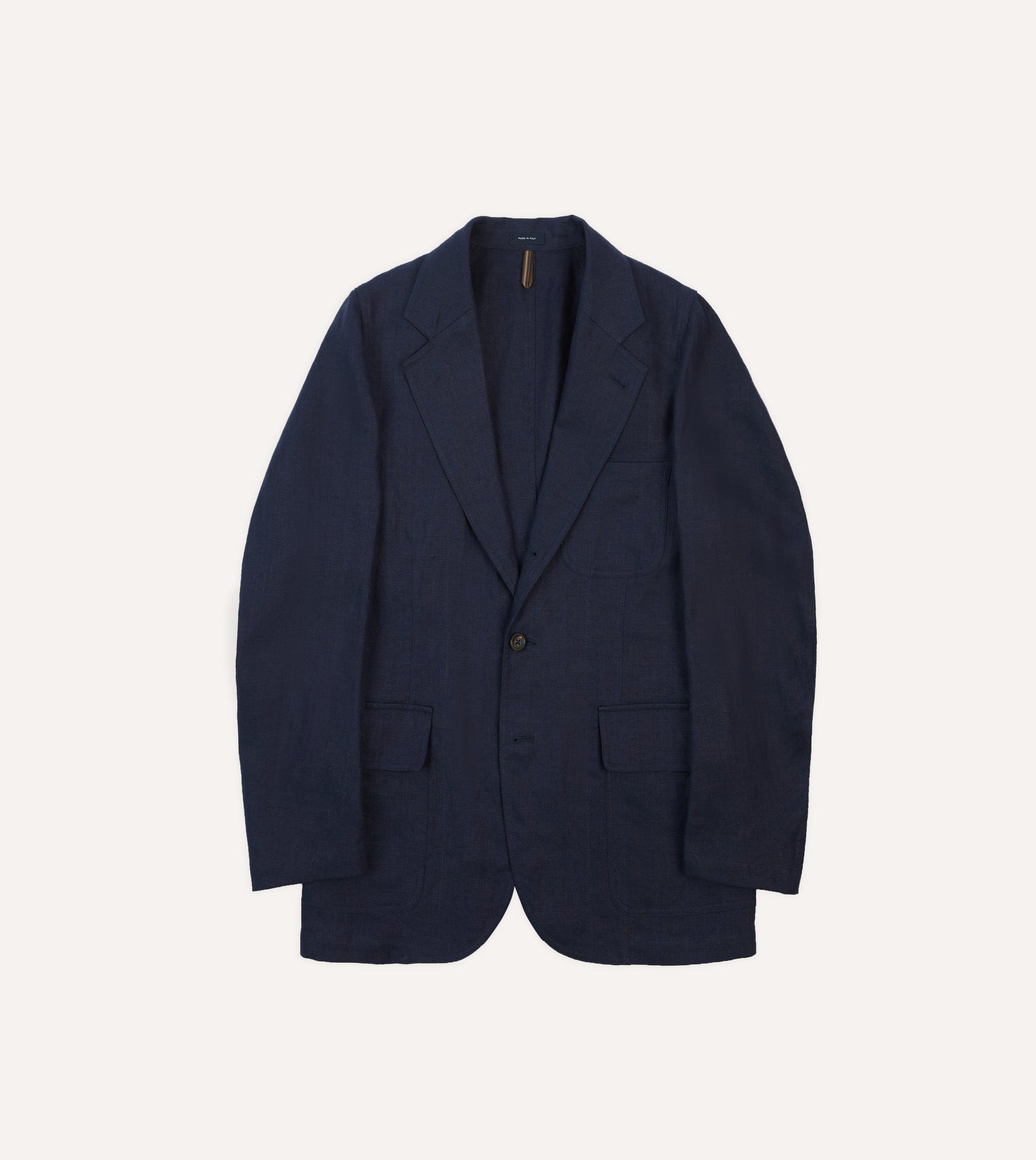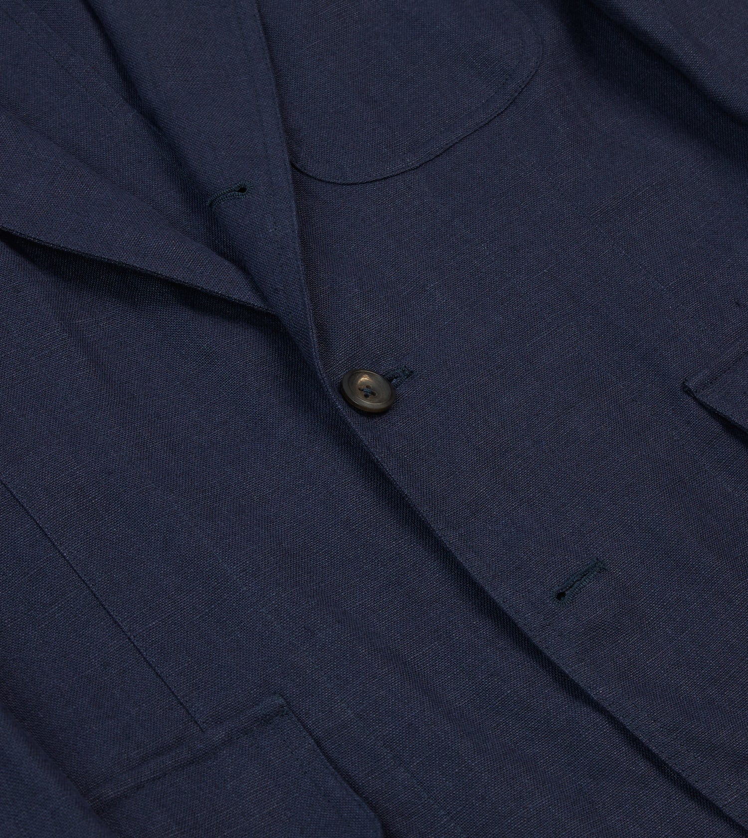 Straddling the half-world between super sharp and slouchy, our Games blazers are cut with ease to make sure they sit at the more relaxed end of the formal spectrum, and as such are cut slightly shorter and fuller in their silhouette than our traditional tailored jackets.|Our signature Mk. I Games Blazer draws inspiration from workwear as much as tailoring; a casual 3-roll-2 button jacket with a boxy silhouette, two patch and flap hip pockets with a patch chest pocket, a generous sleeve and unstructured body shape.|Twin needle seams and an unlined construction bring to mind the uniforms of artists and artisans of the 20th century, while nailing the need for crisp clean tailoring in our busy, modern world.|Cut from a 7.9oz Irish linen cloth with a washed feel, pair it with the matching trousers for an informal take on the classic two-piece suit.