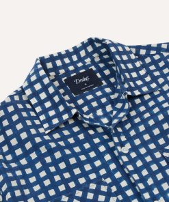 The camp collar holiday shirt has taken many forms‚ and many names‚ over the years, but its essential essence remains undiluted. It’s a simple, square-hemmed, short-sleeved shirt with an open collar. Not to be overdesigned or overthought.|The Drake’s take on this warm weather staple brings the story up-to-date; cut with a neat open collar, loose fit, plain front and straight hemline, all constructed from a soft, breezy cotton fabric, authentically block-printed by hand. It is, quite simply, the quintessential high summer shirt.