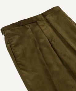 Drakes Men’s Olive Mid-wale Corduroy Single Pleat Trouser