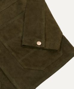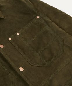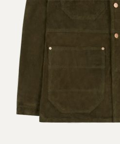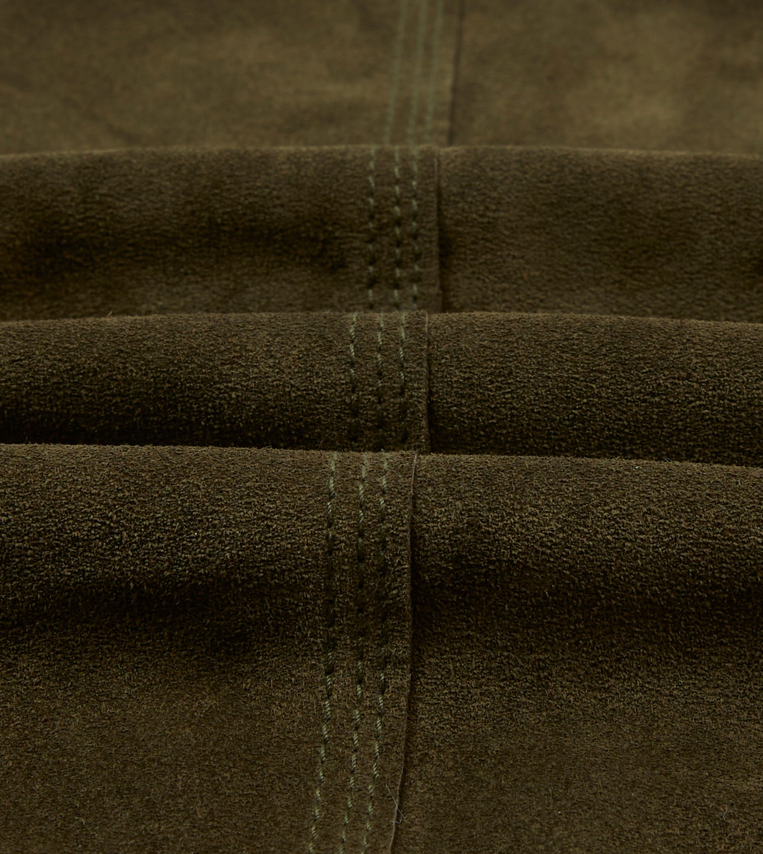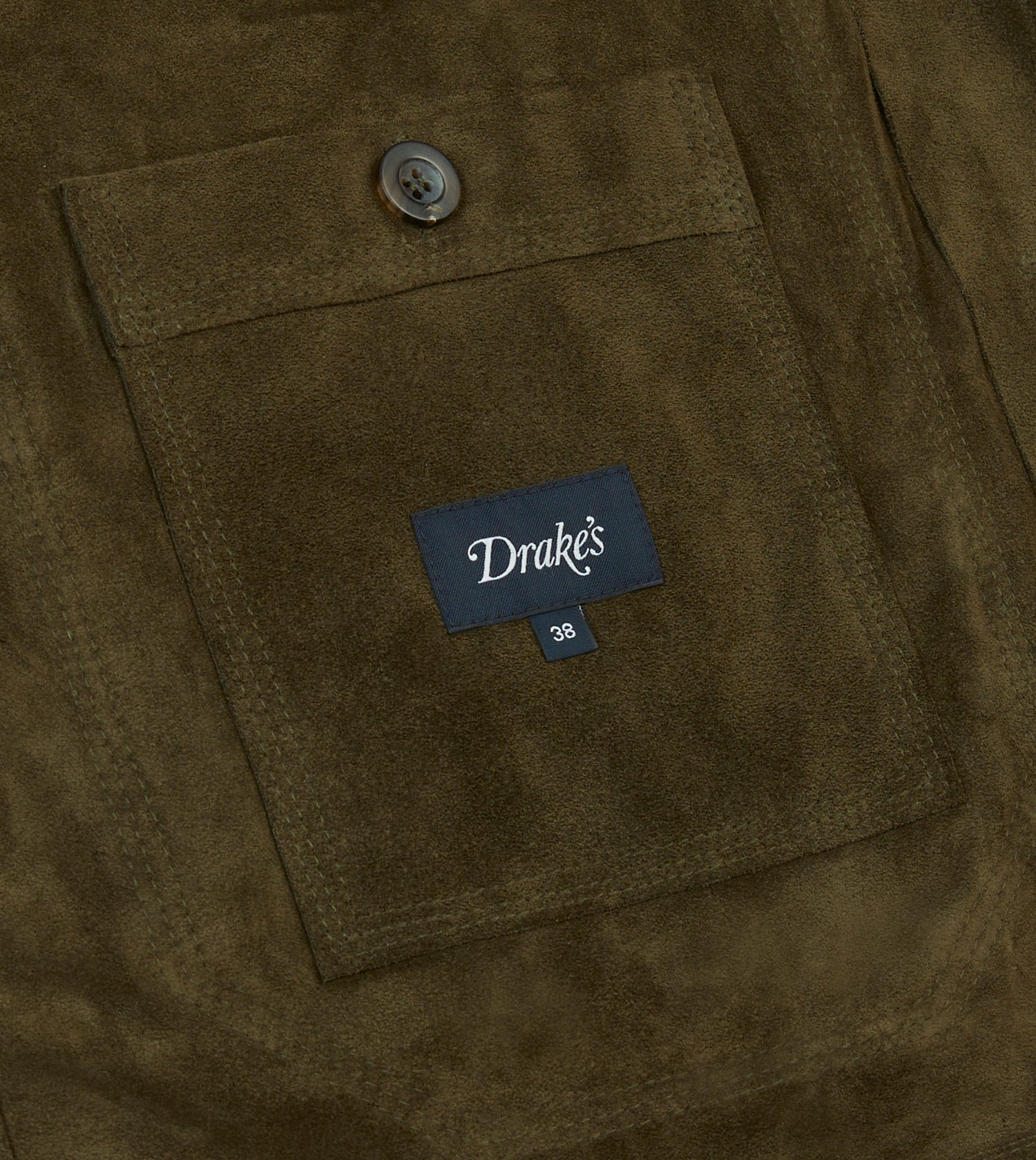 The welder is a classic piece of workwear, firmly in the key of Drake’s.|Modelled on our classic five-pocket chore, with tonal triple needle stitching and brass hardware throughout, we reinforced the pockets and panelling and selected a supple and lightweight Italian suede to add a bit of tactility (and manoeuvrability) and reinforced the pockets and panelling.|With a broad, stiff collar and a simple, straight shape, it is a beautiful example of when form and function meet.