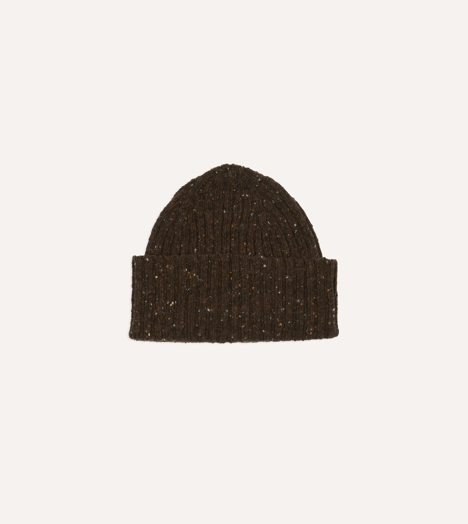 Drakes Men’s Perennials Brown Donegal Ribbed Merino Knit Cap