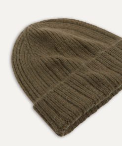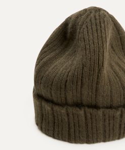 Drakes Men’s Perennials Khaki Green Angora Lambswool Ribbed Knit Cap