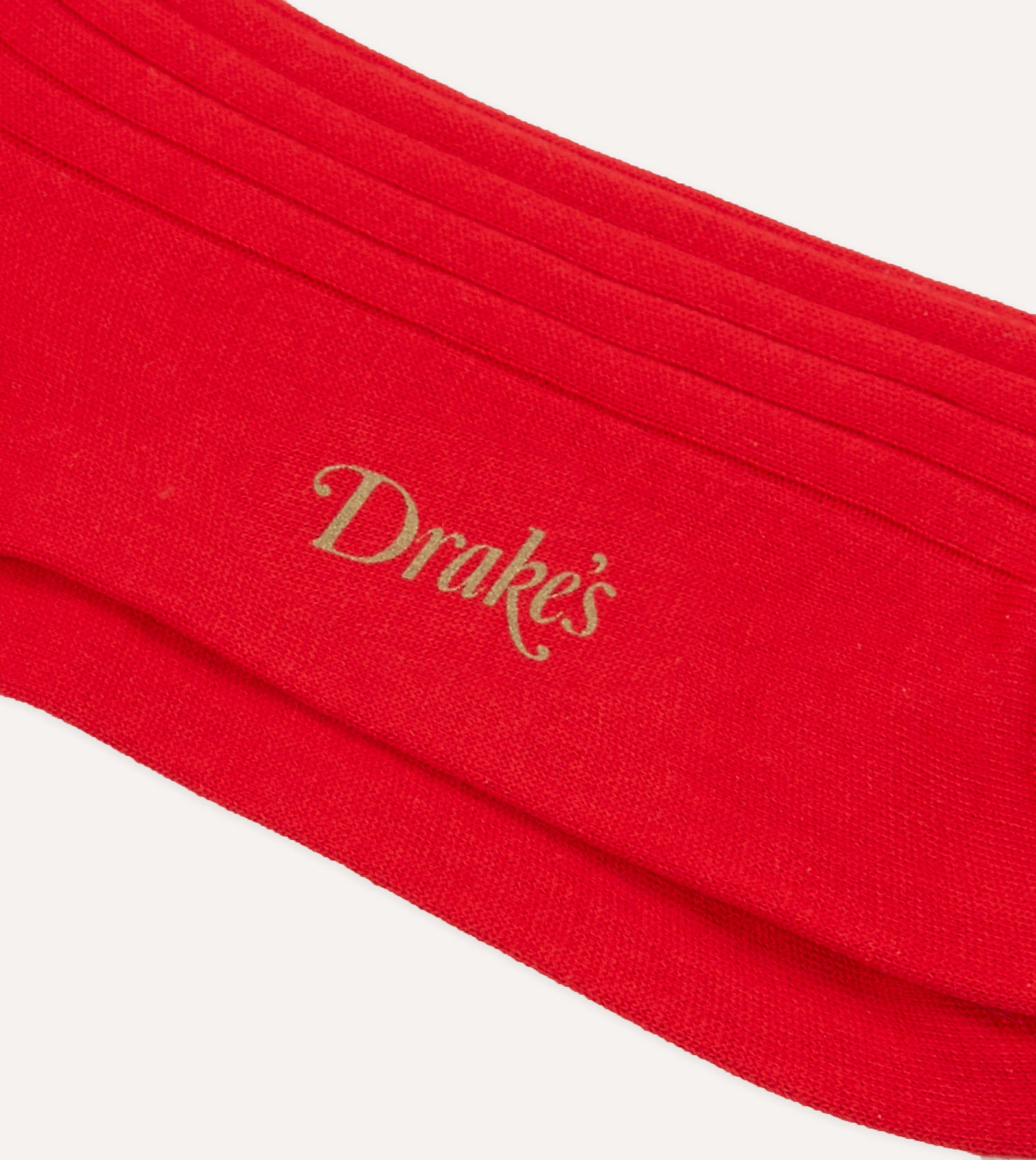 Drakes Men’s Perennials Red Cotton Mid-calf Socks