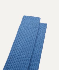 Drakes Men’s Perennials Sky Blue Wool Over-the-calf Socks