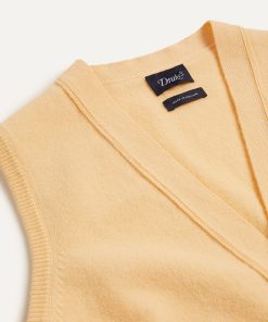 Drakes Men’s Perennials Yellow Lambswool Sleeveless Cardigan