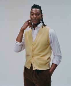 Be the first to review “Drakes Men’s Perennials Yellow Lambswool Sleeveless Cardigan” Cancel reply