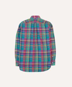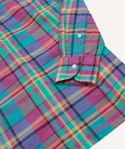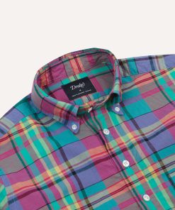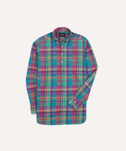 Drakes Men’s Pink And Blue Madras Check Cotton Button-down Popover Shirt