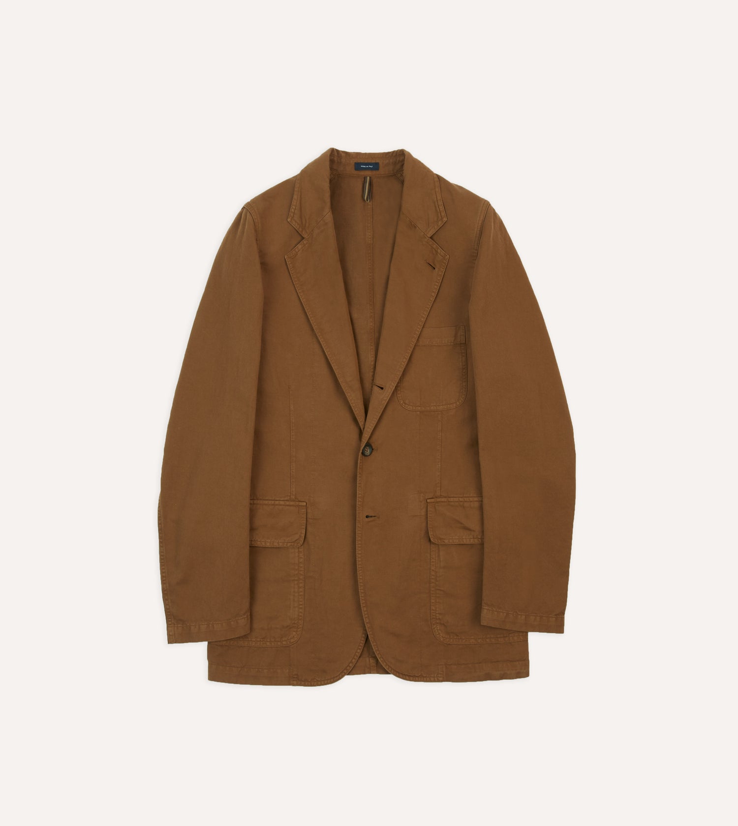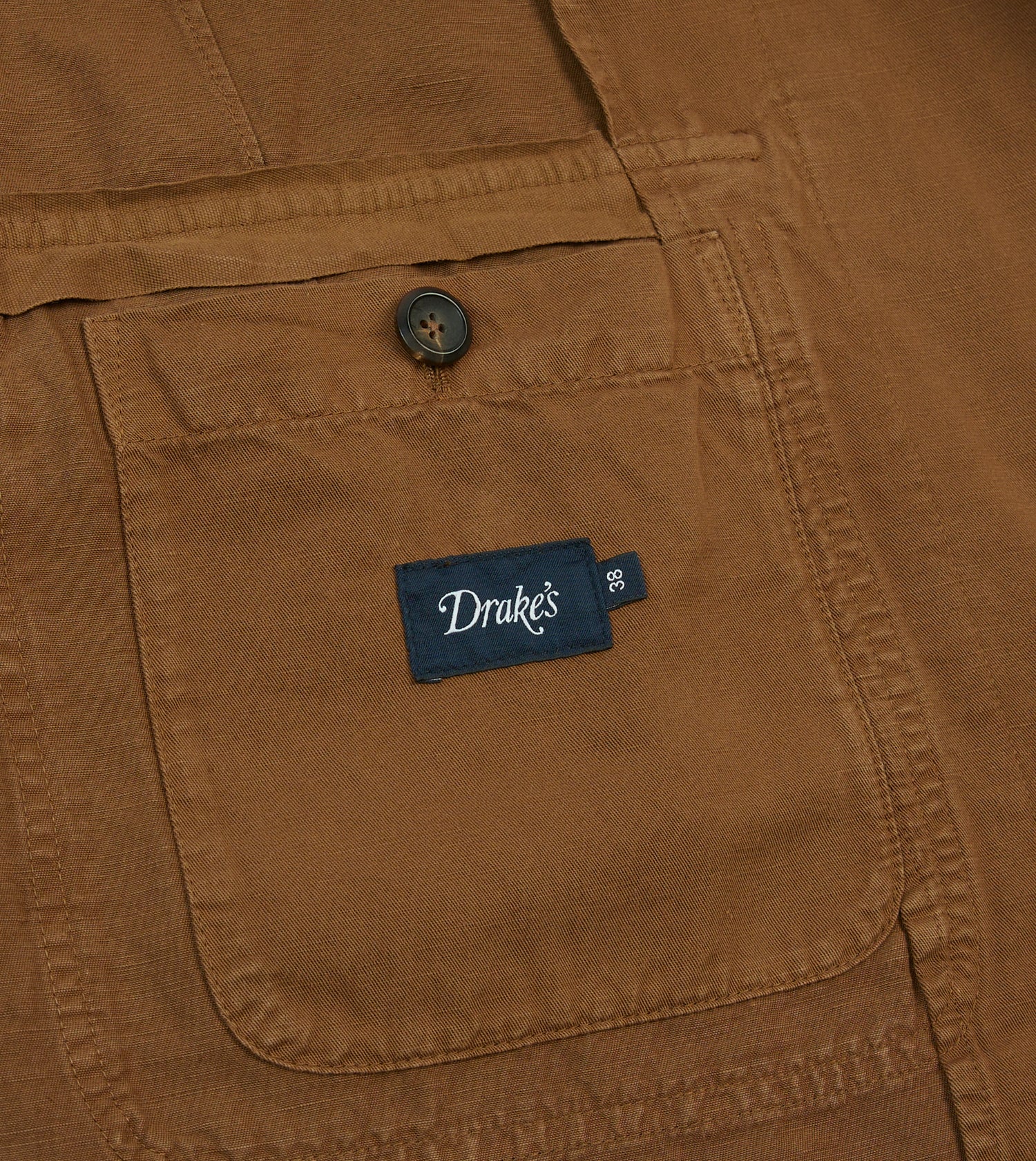 Straddling the half-world between super sharp and slouchy, our Games blazers are cut with ease to make sure they sit at the more relaxed end of the formal spectrum, and as such are cut slightly shorter and fuller in their silhouette than our traditional tailored jackets.|Comfortable, practical and resilient, they’re the kind of everyday classics that make getting dressed in the mornings super easy – regardless of the weather or occasion.|Our signature Mk. I Games Blazer draws inspiration from workwear as much as tailoring; a casual 3-roll-2 button jacket with a boxy silhouette, two patch and flap hip pockets with a patch chest pocket, a generous sleeve and unstructured body shape.|Twin needle seams and an unlined construction bring to mind the uniforms of artists and artisans of the 20th century, while nailing the need for crisp clean tailoring in our busy, modern world.|Cut from a lightweight cotton linen blend, pair it with the matching trousers for an informal take on the classic two-piece suit.