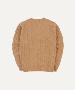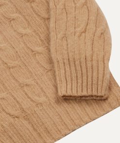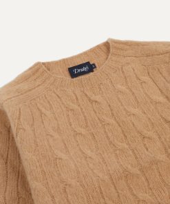 A brushed treatment gives this lambswool jumper an extraordinarily soft hand, while the cable knitting method creates a pleasingly rustic effect. Based on a hand-knit jumper from the ’30s, it makes for an idiosyncratic alternative to the brushed Shetland knit.