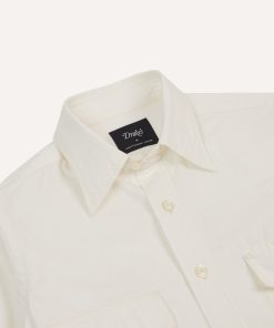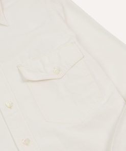 Built for both utility and understated style, this rugged shirt moves seamlessly from workshop to weekend. Practical yet effortless, it is designed to be anything but a chore to wear.|Cut from a Japanese cotton, it features a curved hem, single-button cuffs, and two flap pockets, perfect for keeping essentials close without weighing down your trousers. Every detail, from the fisheye mother of pearl buttons to the single-needle construction, reflects Drake’s hallmark attention to quality.
