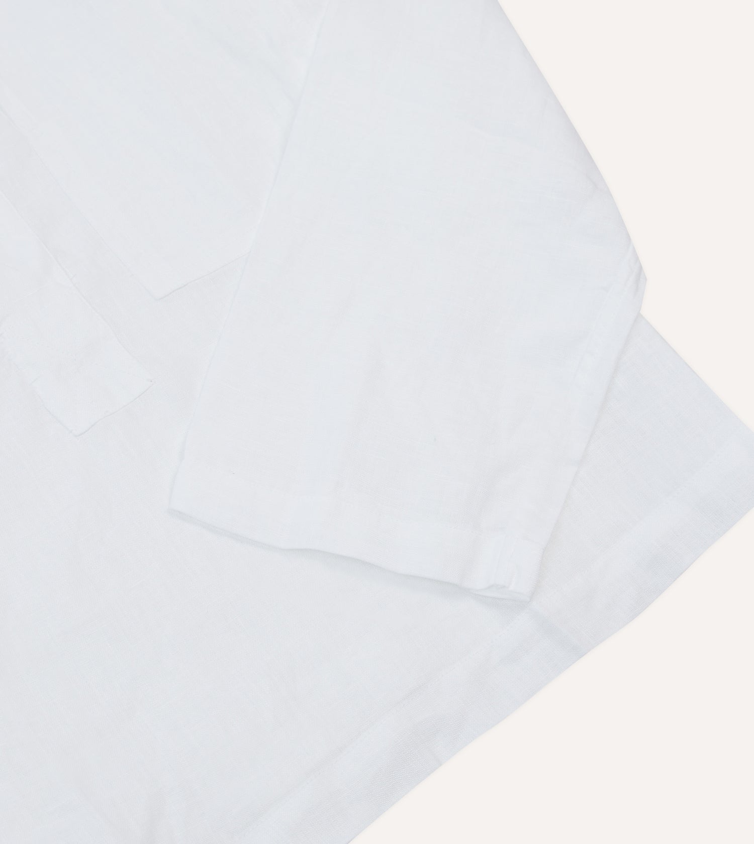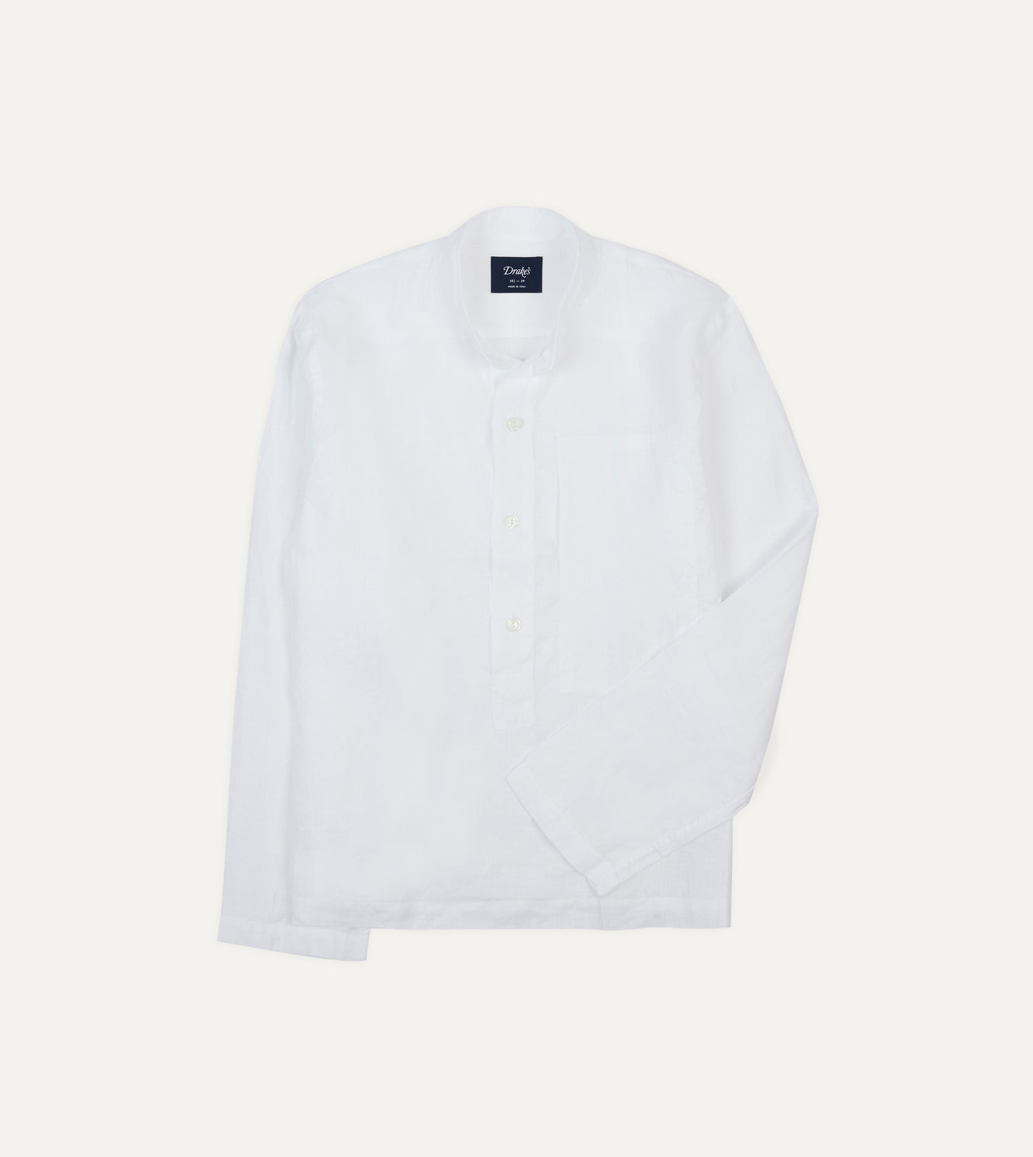 To wear linen is to embrace the season. A colour palette guaranteed to fade gracefully and a gently rumpled texture are the unmistakable calling cards of a great summer shirt.|This lightweight linen piece features a Mandarin (or Grandad) collar and a handy map pocket on the chest.