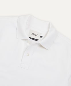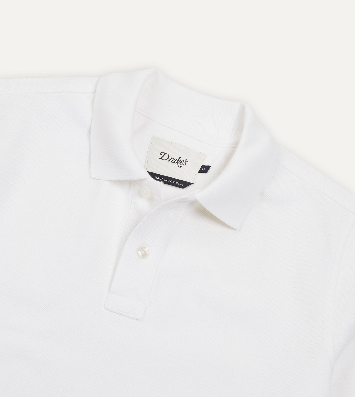 Drakes Men’s White Piqué Cotton Polo Shirt